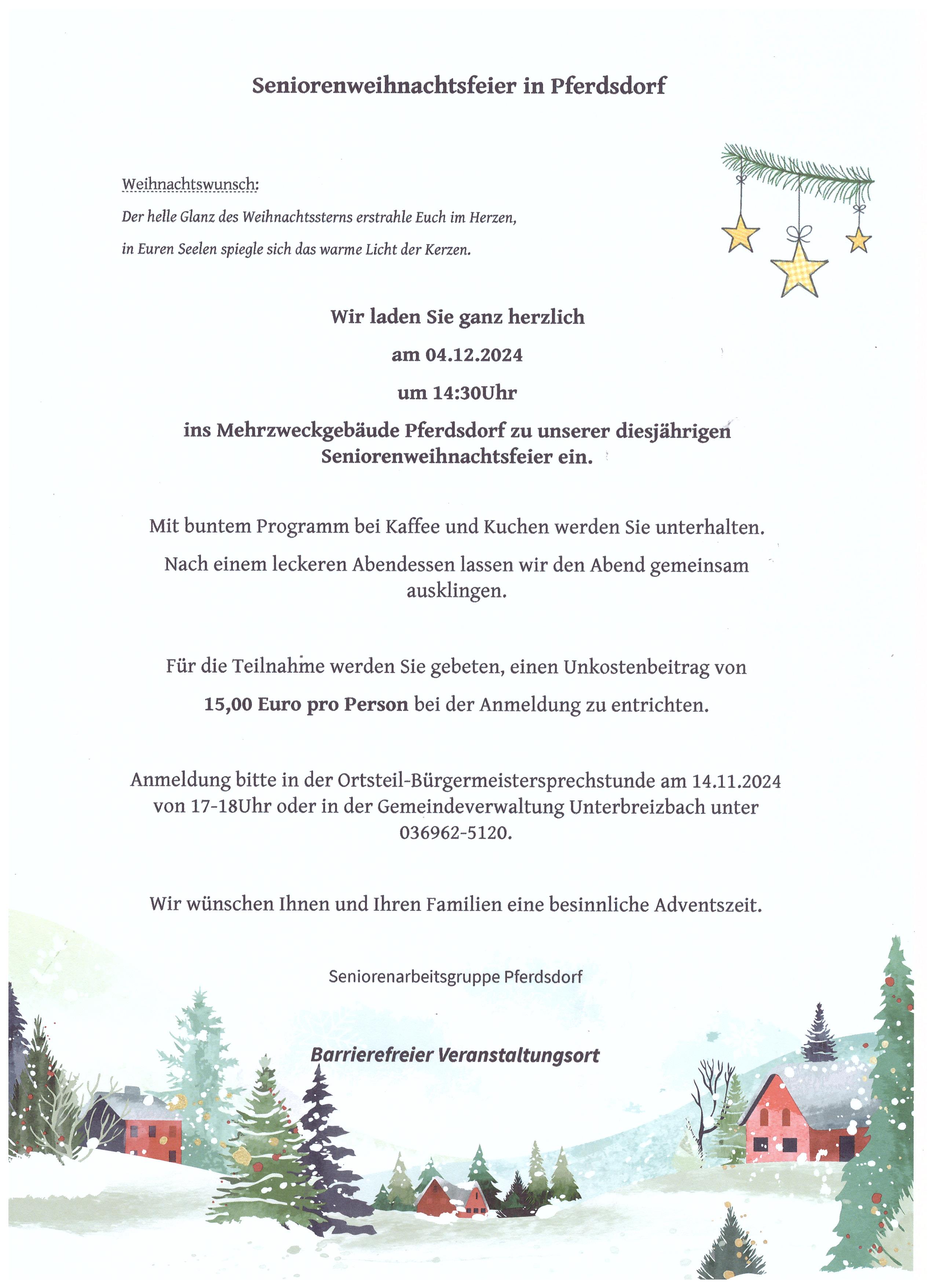 Anmeldung bitte in der Ortsteilbürgermeistersprechstunde am 14.11. von 17 bis 18 Uhr oder in der Gemeindeverwaltung unter 036962 5120